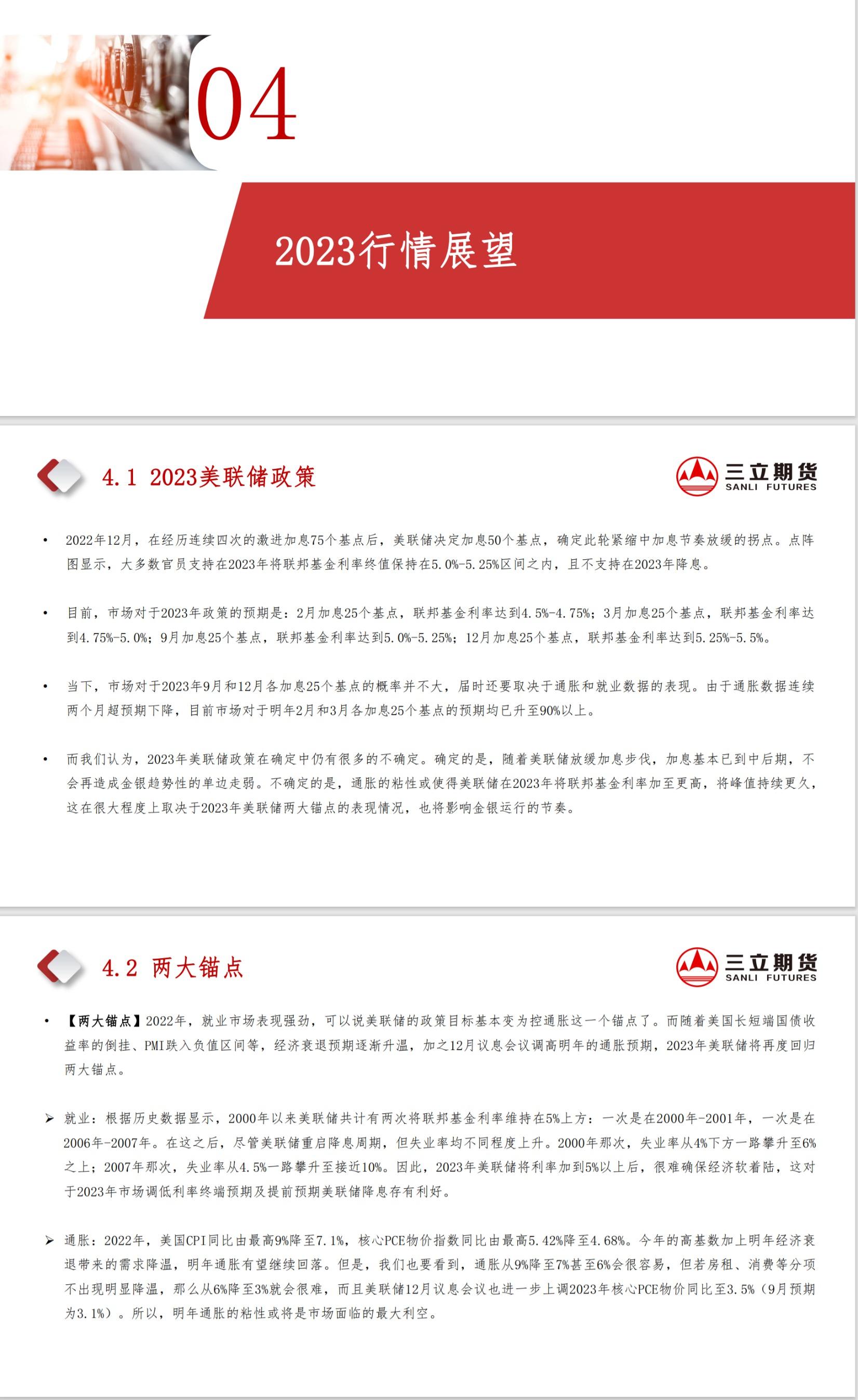 汇通财经APP讯——从年度视角来看,美联储放缓加息拐点已现,前期紧压的弹簧在逐渐放松,压在金银上方最大的石头也在慢慢松动,预计2023年金银将整体以上行为主。