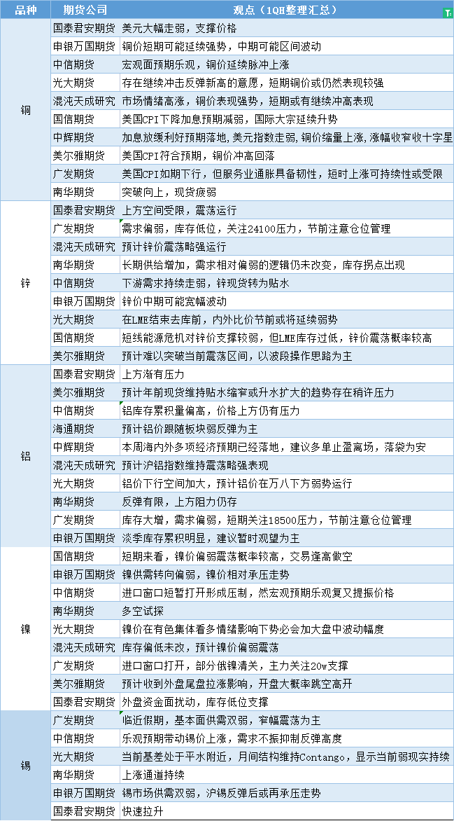 标题:期货公司观点汇总一张图:1月13日有色系(铜、锌、铝、镍、锡等)