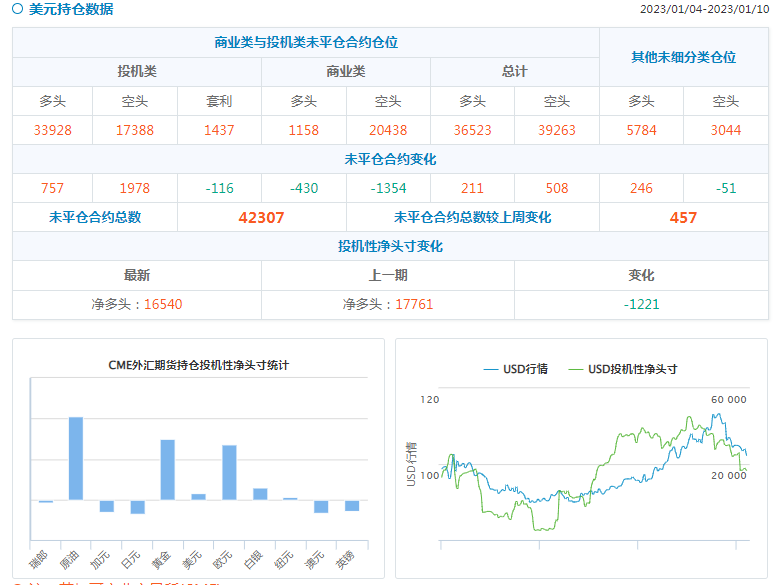 贵金属方面,铜投机者在截至1月10日的一周内将净多头头寸增加20508手,至28796手;COMEX黄金投机者在截至1月10日的一周内将净多头头寸增加9770手,至82574手,COMEX白银投机者在截至1月10日的一周内将净多头头寸减少4775手,至24610手。