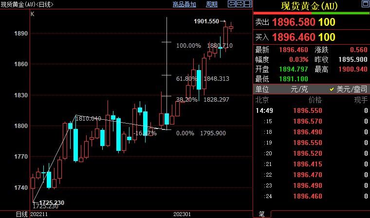现货黄金上浮0.02%至1896.21美元/盎司;COMEX期金主力合约上浮0.03%至1899.3美元/盎司;