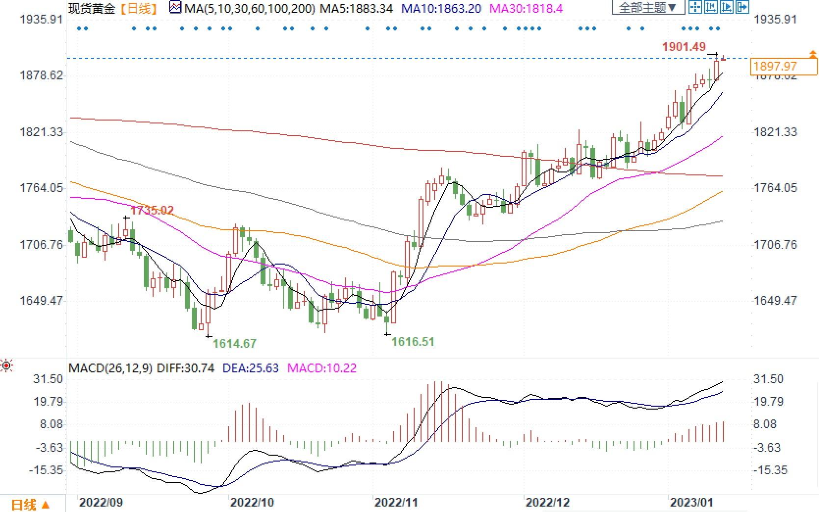 现货黄金日线图