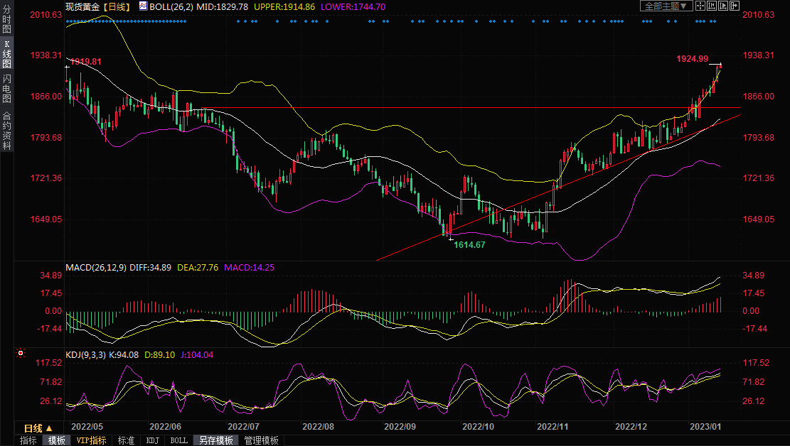 Blue Line Futures首席市场策略师Phillip Streible表示:“有一种引力推动金价升向2000美元,随着价格继续走高,这种引力只会进一步增强。金价将继续走高,但我愿意耐心等待回调,短期而言,我认为应该逢低买入。”一些分析师表示,对美联储激进货币政策立场的预期转变,仍是金价最大的看涨因素。通胀压力降温给了美联储下个月进一步放慢加息步伐的空间,导致债券收益率和美元在一定程度上逆转了去年的大幅升势。