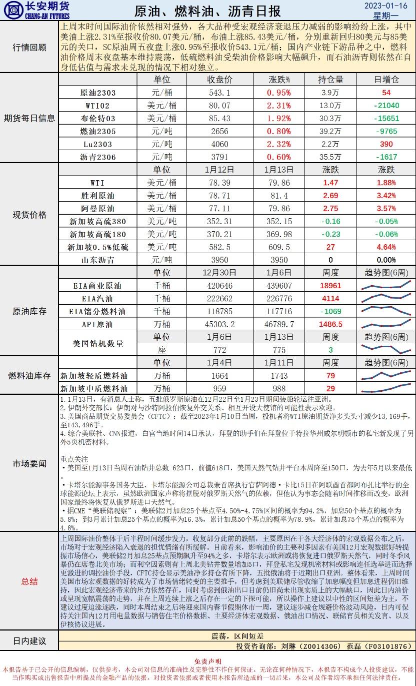 1月16日,长安期货发布原油早评,认为原油将震荡,区间短差。