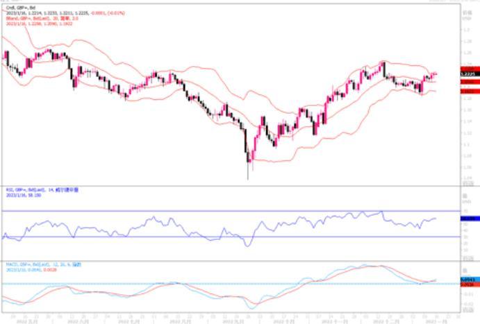 欧元兑美元自周四的高点1.0868有所回撤,但收盘仍处在1.0833附近。上周五数据显示,西班牙2022年12月核心通胀率升之7%,创历史新高,首次超过总体通胀率(5.7%)。在其他欧元区国家,能源部分的有利基数料将导致整体通胀在未来几个月进一步下降,但其他经济领域通胀压力仍将居高不下。为此,欧央行将主要焦点放在核心通胀是否持续降温上。因此,在核心通胀开始下降之前,欧央行都会谨慎地谈及政策的调整。反观美国方面,上周四的数据显示,美国通胀降温,巩固了美联储将放缓加息步伐的预期。费城联邦储备银行总裁哈克周四在宾夕法尼亚州马尔文对当地一个团体发表讲话时表示:“今后加息25个基点将是合适的。”上周五公布的密西根大学调查显示,美国消费者对未来12个月价格压力将大大缓解越来越有信心,周五的一项调查显示,他们的一年期通胀预期在1月份降至2021年春季以来的最低水平。为此有机构分析笃定2月转向加息25个基点成为定局。小时图盘中一度出现100点巨震,最终多头占上风,当前维持在日高1.0866下方强势整理。短期内警惕小幅回踩的可能性。整体上,欧元保持向上走态势。