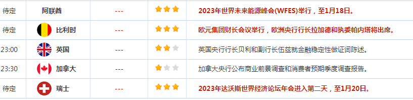 汇通财经APP讯——北京时间周一(1月16日),本周美联储将公布经济状况褐皮书,同时关注诸多美联储官员的讲话;欧洲央行行长拉加德在世界经济论坛上发表讲话,欧洲央行将公布2022年12月货币政策会议纪要;而油价关注油市两大月报,另外,2023年达沃斯世界经济论坛将在周五闭幕。