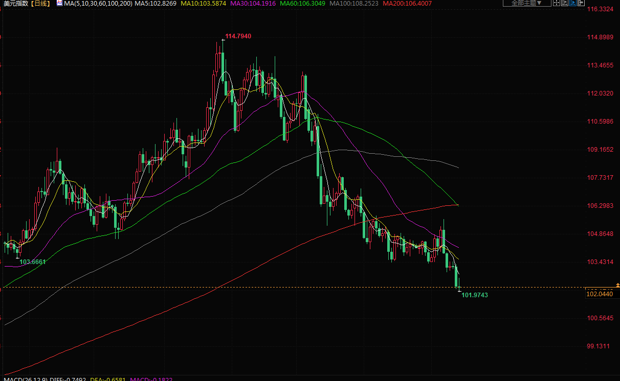 美元指数一度触及6月6日以来最低,周四的数据显示,美国通胀降温,巩固了美联储将放缓加息步伐的预期。