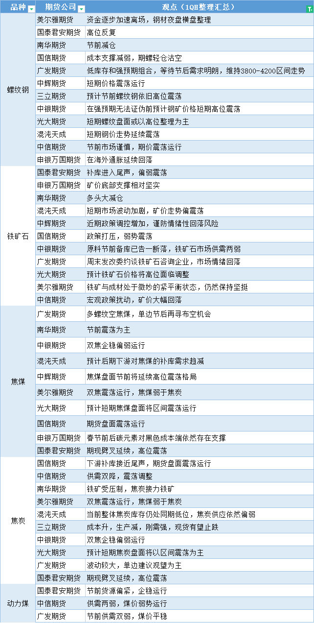 期货公司观点汇总一张图:1月17日黑色系(螺纹钢、焦煤、焦炭、铁矿石、动力煤等)
