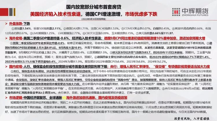 9月30日,中辉期货发布宏观早报,称短期流动性收紧和需求下行预期压制市场,国内十一假期之前市场避险情绪增加。