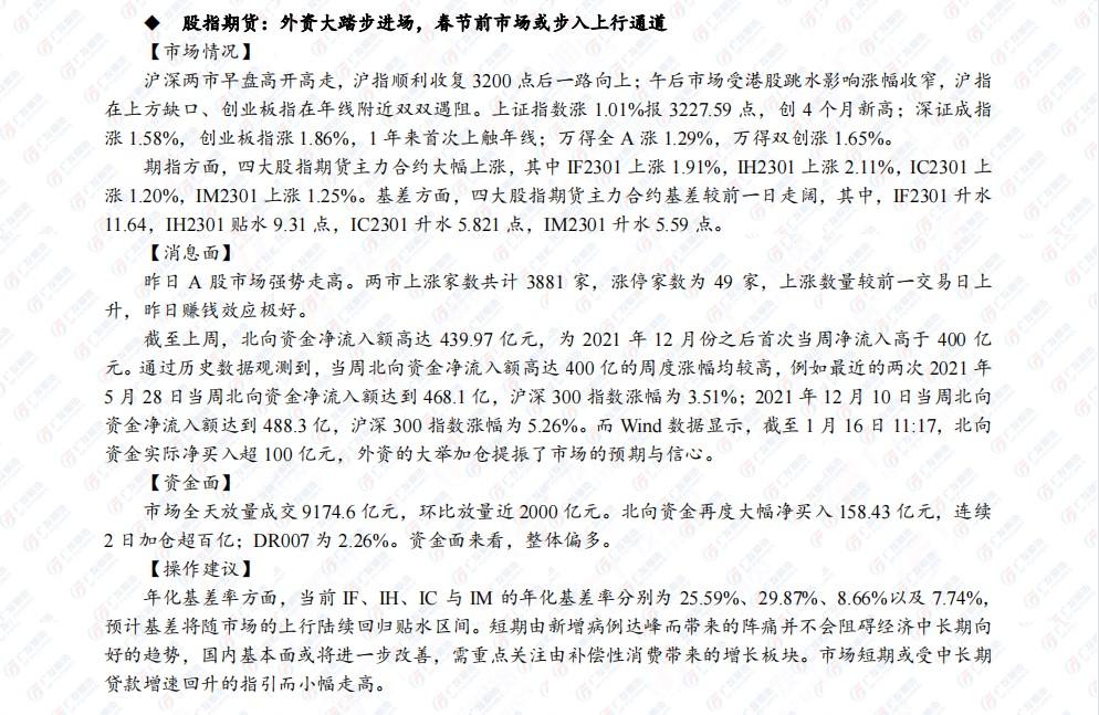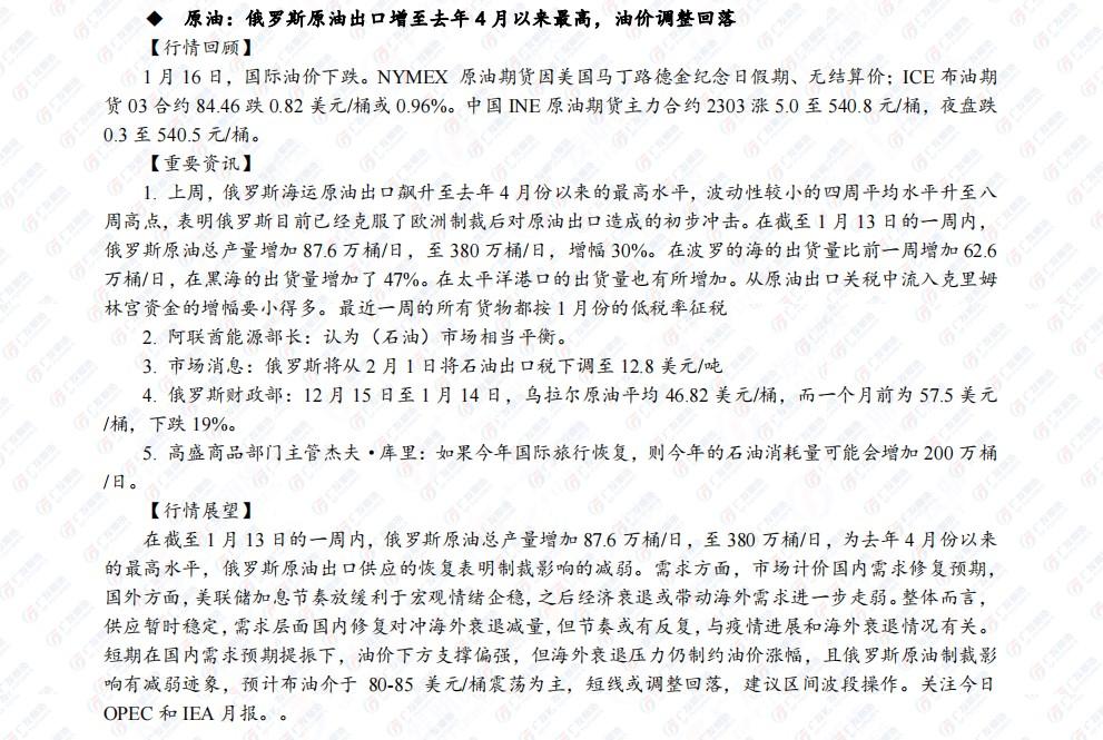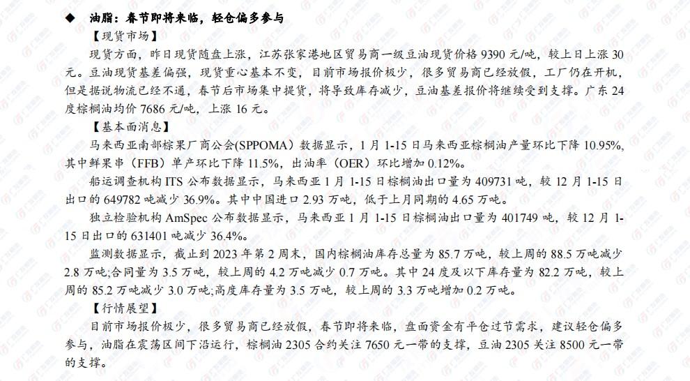 广发期货发布1月17日早知道,建议黄金多单继续持有;钢材多单可减仓过节;豆粕短线单边存上涨机会;生猪近期价格波动大,稳健投资者前期多单建议平仓或减仓持有;豆油2305关注8500元一带的支撑;原油短线或调整回落,建议区间波段操作,PVC激进者可尝试在6500元以上短空。