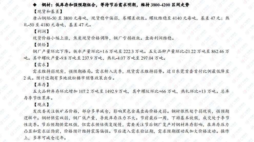 标题:广发期货早知道:钢材多单可减仓过节,豆粕短线单边存上涨机会,原油短线或调整回落
