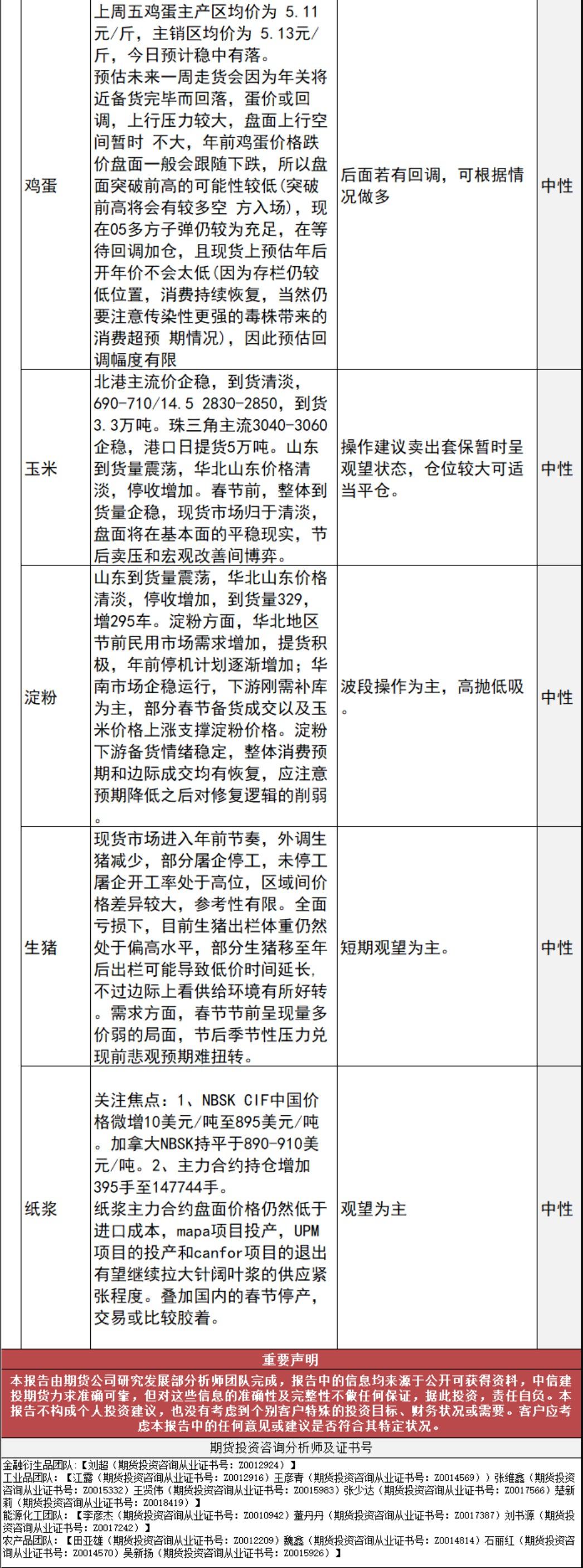 鸡蛋:预估未来一周走货会因为年关将近备货完毕而回落,蛋价或回调,上行压力较大,盘面上行空间暂时 不大,年前鸡蛋价格跌价盘面一般会跟随下跌,所以盘面突破前高的可能性较低。