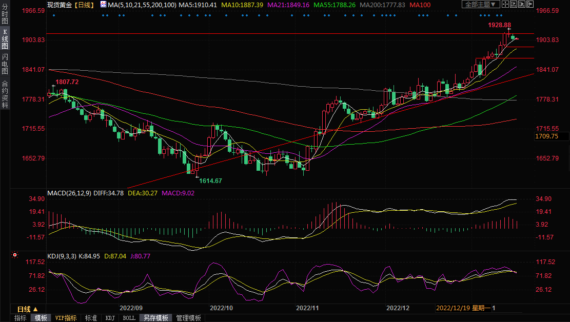 高盛在上周五的一份报告中说,“我们预计2023年的金价将在1950美元/盎司左右。”
