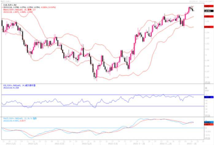 欧元兑美元下跌0.3%,至1.0789美元。彭博新闻报导,据了解欧洲央行政策制定者讨论情况的官员说,他们开始考虑以比总裁拉加德去年12月表示的更慢的速度加息。这些官员表示,尽管拉加德在2月份暗示的加息50个基点仍有可能,但在3月份的下次会议上小幅加息25个基点的前景正在获得支持。消息虽未经证实,但当日对欧元造成压制。小时以及4小时短线图上,
