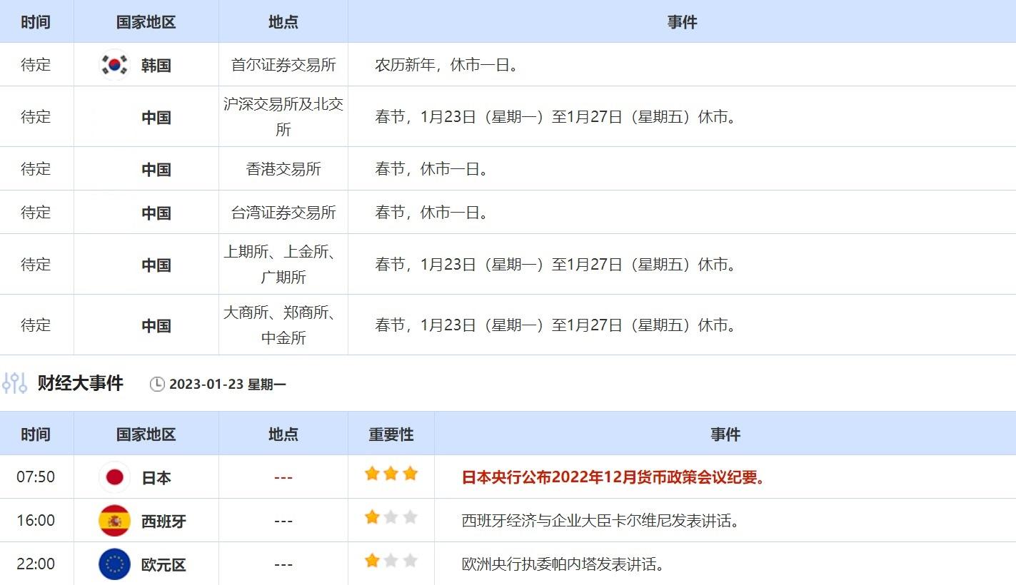 ①1月23日(周一)关键字:日本央行12月货币政策会议纪要