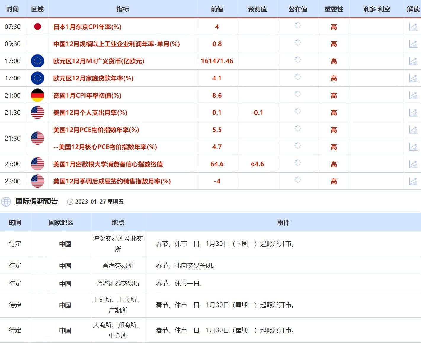 1月26日当天,加拿大央行行长和高级副行长召开货币政策新闻发布会。此外,日本央行公布1月货币政策会议审议委员意见摘要。这两件大事也许引起投资者重视。⑤1月27日(周五)关键字:日本1月CPI,美国12月PCE物价指数