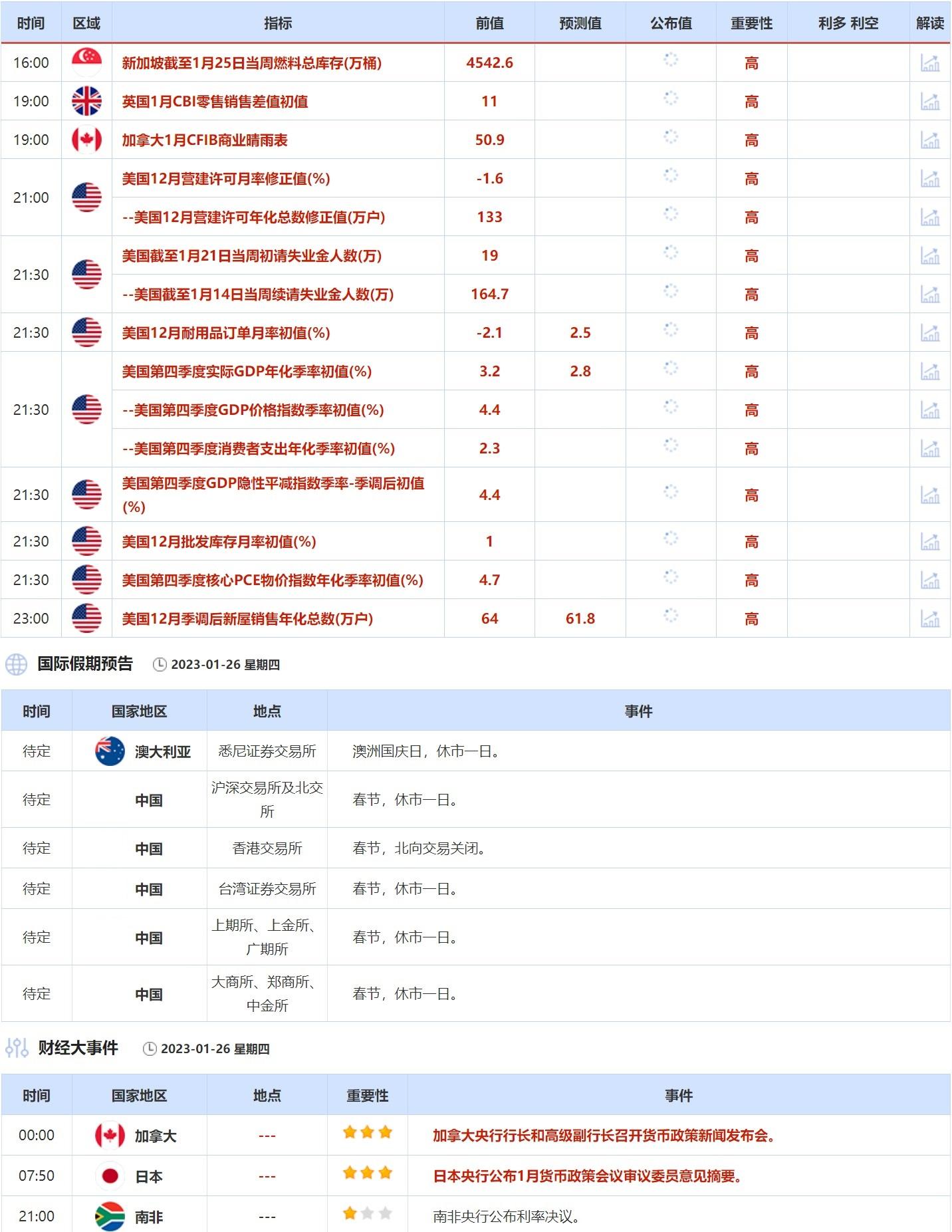 ③1月25日(周三)关键字:加拿大央行利率决议,美国API和EIA原油库存变动