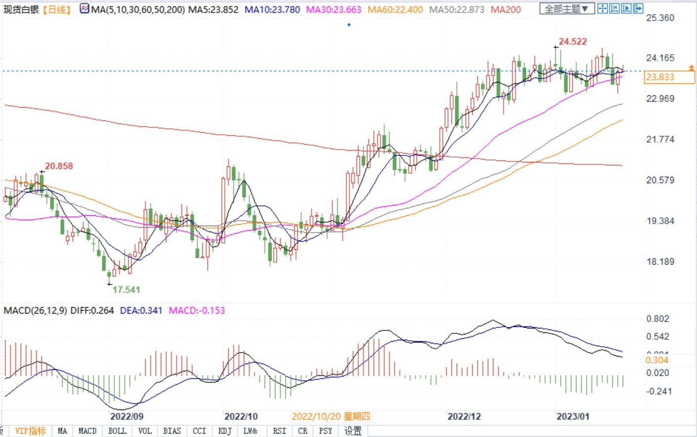 现货白银最新交易价格为每盎司24美元左右。