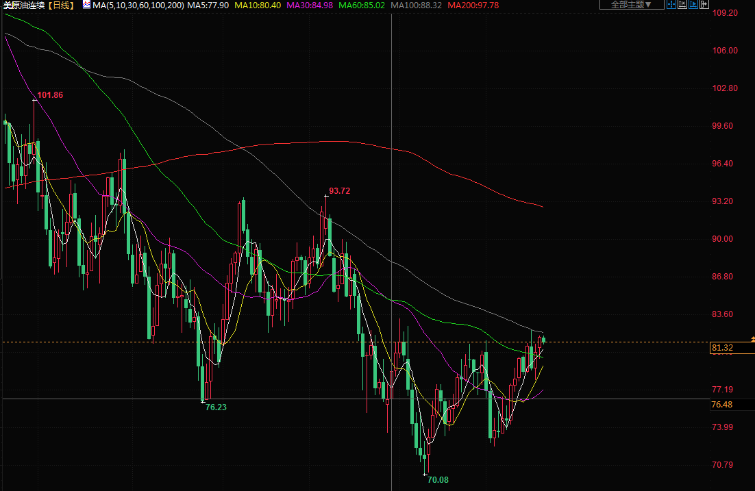 总体来看,需求预期乐观,加之地缘紧张局势持续支撑油价,油价中长线存上涨空间;但短线交易需警惕伊核谈判的乐观进展,以及欧盟即将实施的天然气价格上限可能引发的市场突变。北京时间10:34,