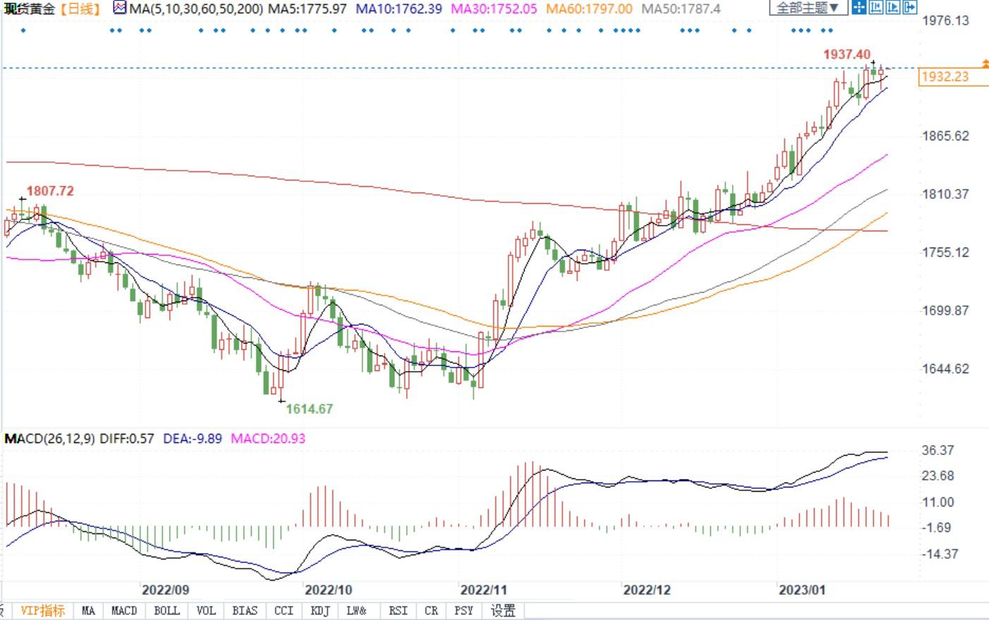 现货黄金日线图