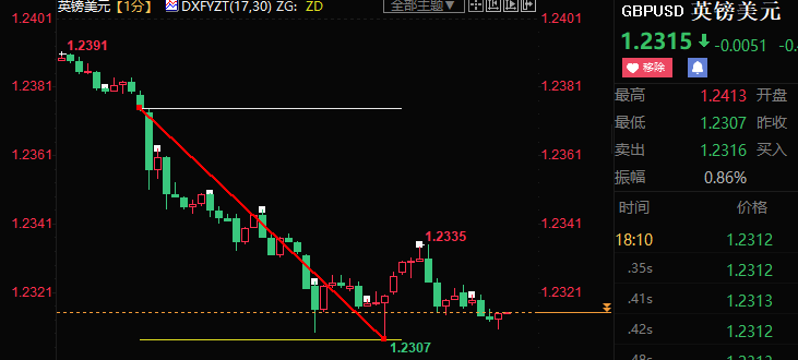英镑兑美元在数据公布后的30分钟内大跌近70点至1.2307。