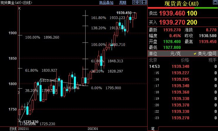 现货黄金上涨0.47%至1939.90美元/盎司;COMEX期金主力合约上涨0.66%至1941.4美元/盎司;