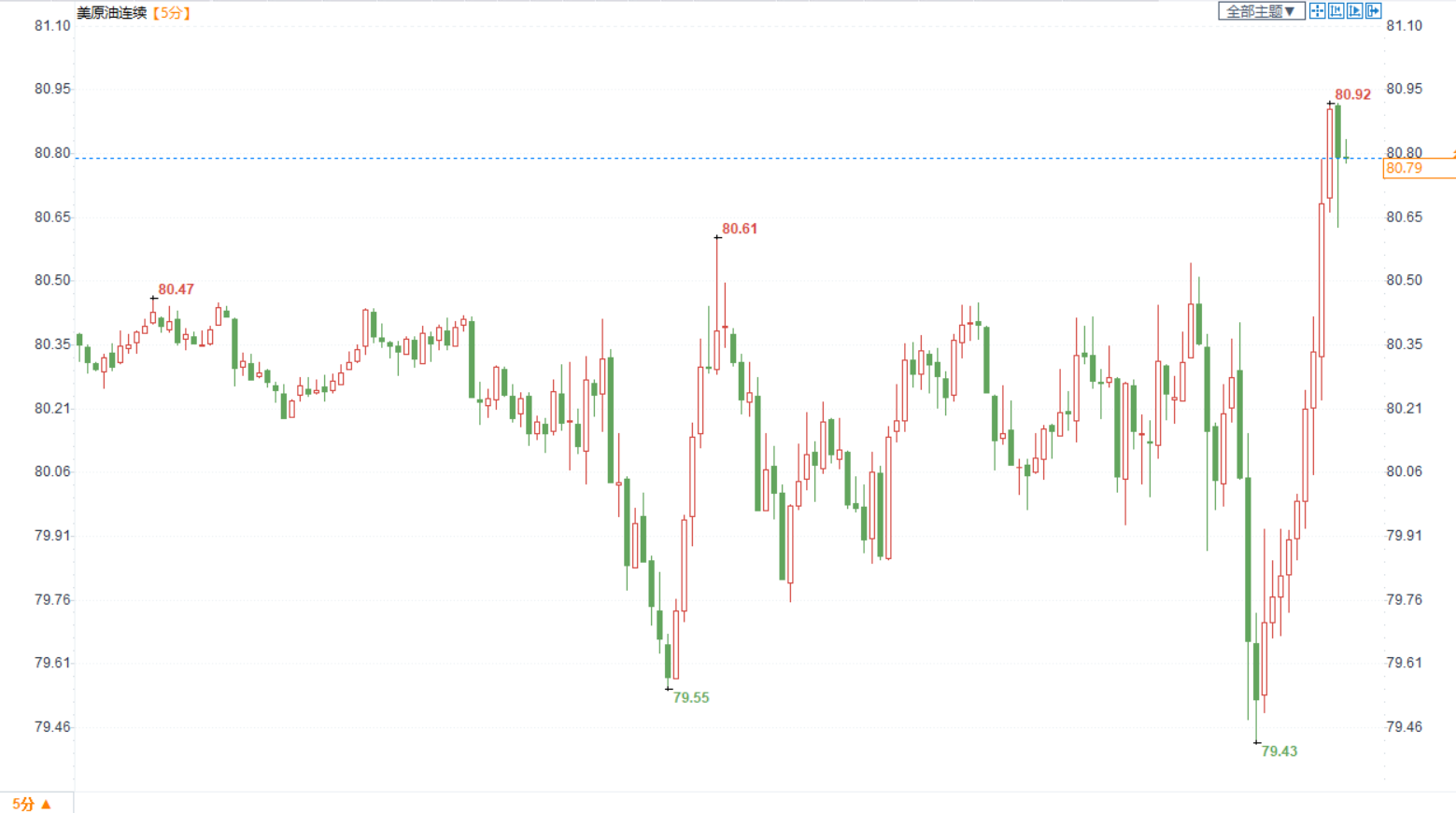 美国原油价格5分钟图显示