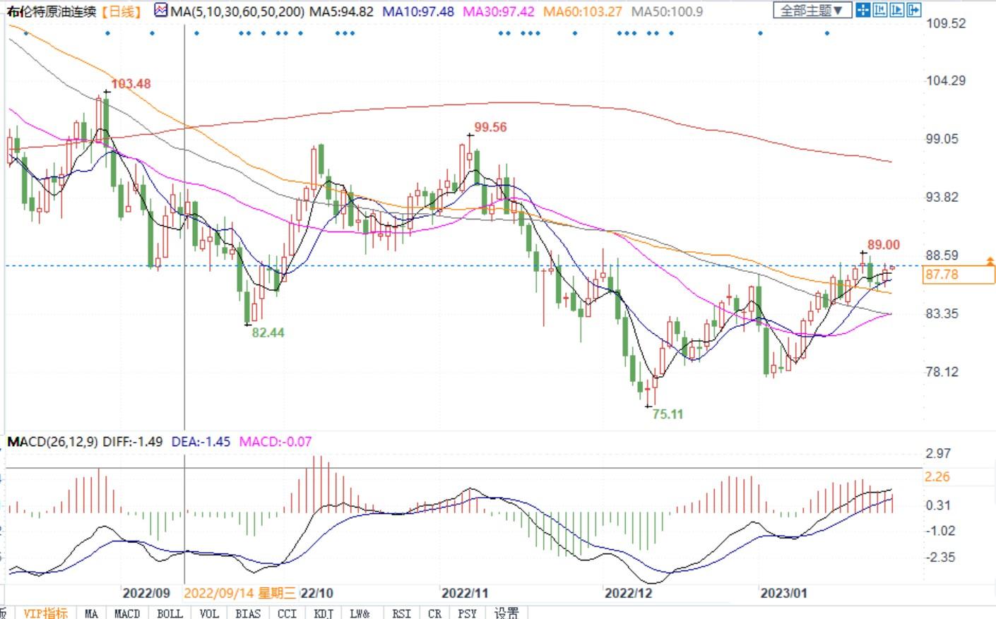 经历之前的下跌后,布油出现稳步上涨,1月23日一度创下89美元的高位,从1月5日创下的低点上涨逾10美元。
