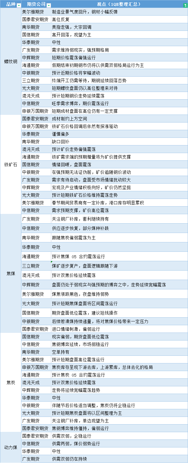 标题:期货公司观点汇总一张图:2月1日黑色系(螺纹钢、焦煤、焦炭、铁矿石、动力煤等)