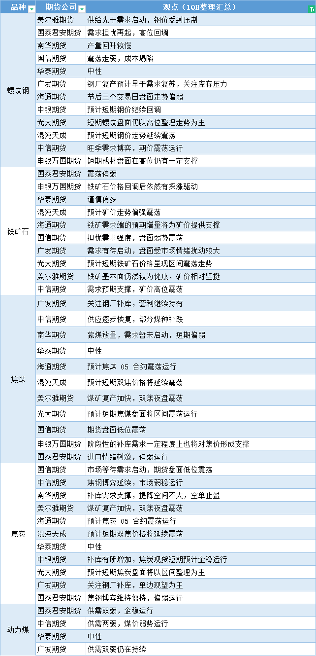 标题:期货公司观点汇总一张图:2月2日黑色系(螺纹钢、焦煤、焦炭、铁矿石、动力煤等)