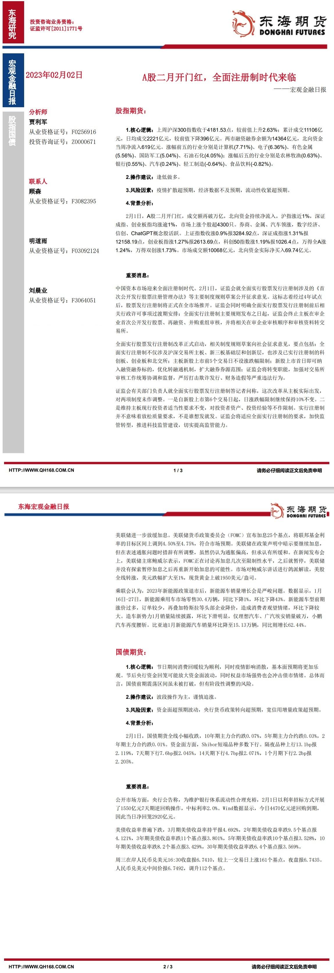 标题:【东海期货2月2日金融期货日报】:A股二月开门红,全面注册制时代来临