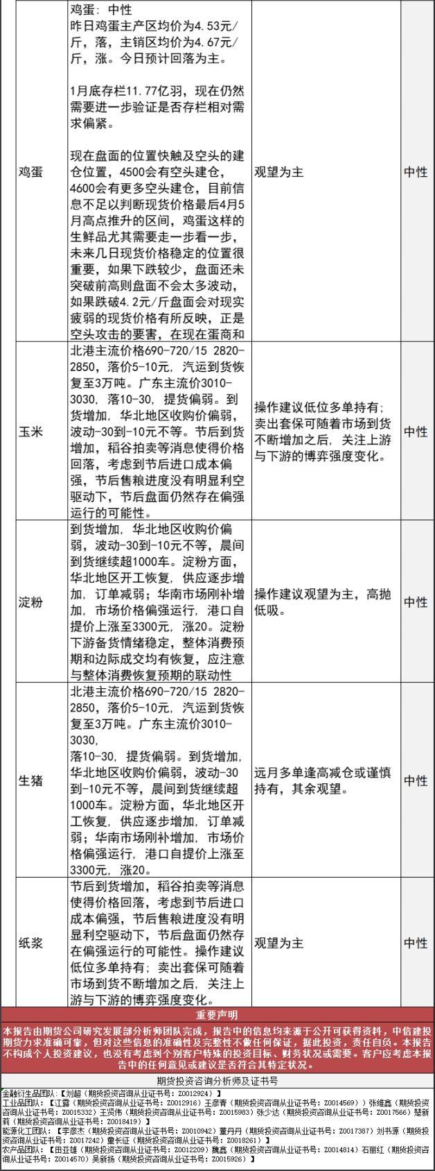 标题:中信建投期货2月3日早间交易策略