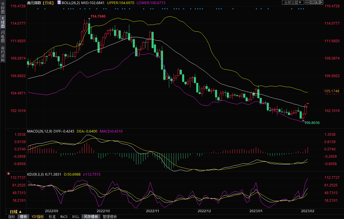 美元指数小幅冲高,一度创逾三周新高至103.24,延续上周五涨势。上周五美元大涨1.23%,因数据显示,美国雇主1月份增加的就业岗位明显多于经济学家的预期,这可能给美联储继续加息提供了更大余地。