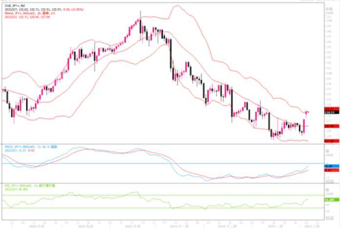 美元兑日元继续大幅上挺1.11%,盘中最高触及132.90,收盘于132.63。稍早《日经新闻》援引不具名政府和执政党消息人士报导,日本政府已经就央行副总裁雨宫正佳接替黑田东彦担任央行总裁一事征求了意见。雨宫正佳一直被认为是央行总裁职位竞争者中最鸽派的,这打击了日本央行政策正常化将在新总裁领导下取得进展的希望。叠加近期美国强劲非农数据所带来的冲击,日元近日走软较为剧烈。4小时图上