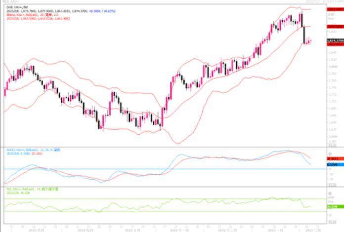 现货黄金维持反弹升势,全日微涨0.30%,收盘于1872.20美元水平。