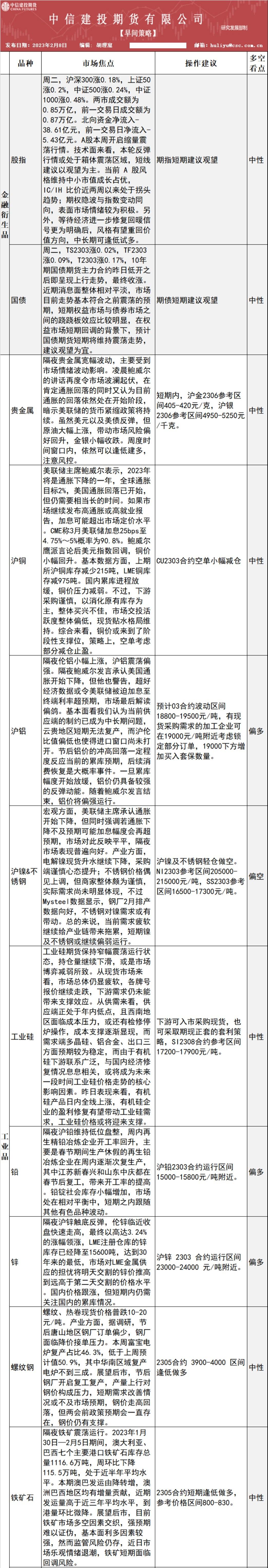 标题:中信建投期货2月8日早间交易策略