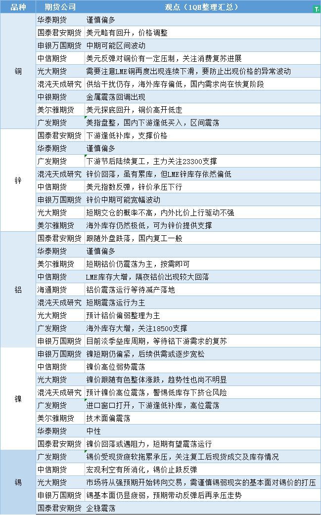 标题:期货公司观点汇总一张图:2月9日有色系(铜、锌、铝、镍、锡等)