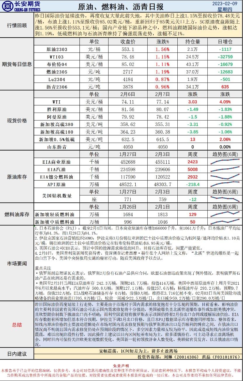 2月9日,长安期货发布原油早评,称美国或负责北溪爆炸,油价上行动力不足或重回震荡,建议区间短差为主,前多止盈离场。