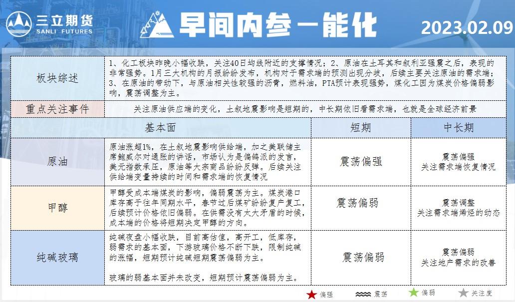三立期货早间内参显示,原油短线震荡偏强,中长线震荡偏强,关注需求端恢复情况。甲醇震荡偏弱,中长线震荡调整;纯碱玻璃短线震荡偏弱,中长线震荡偏弱,关注地产需求的改善。