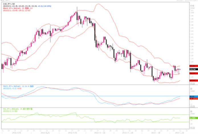 美元兑日元继续处于各短期均线上方,且运行于布林带通道上方,显见