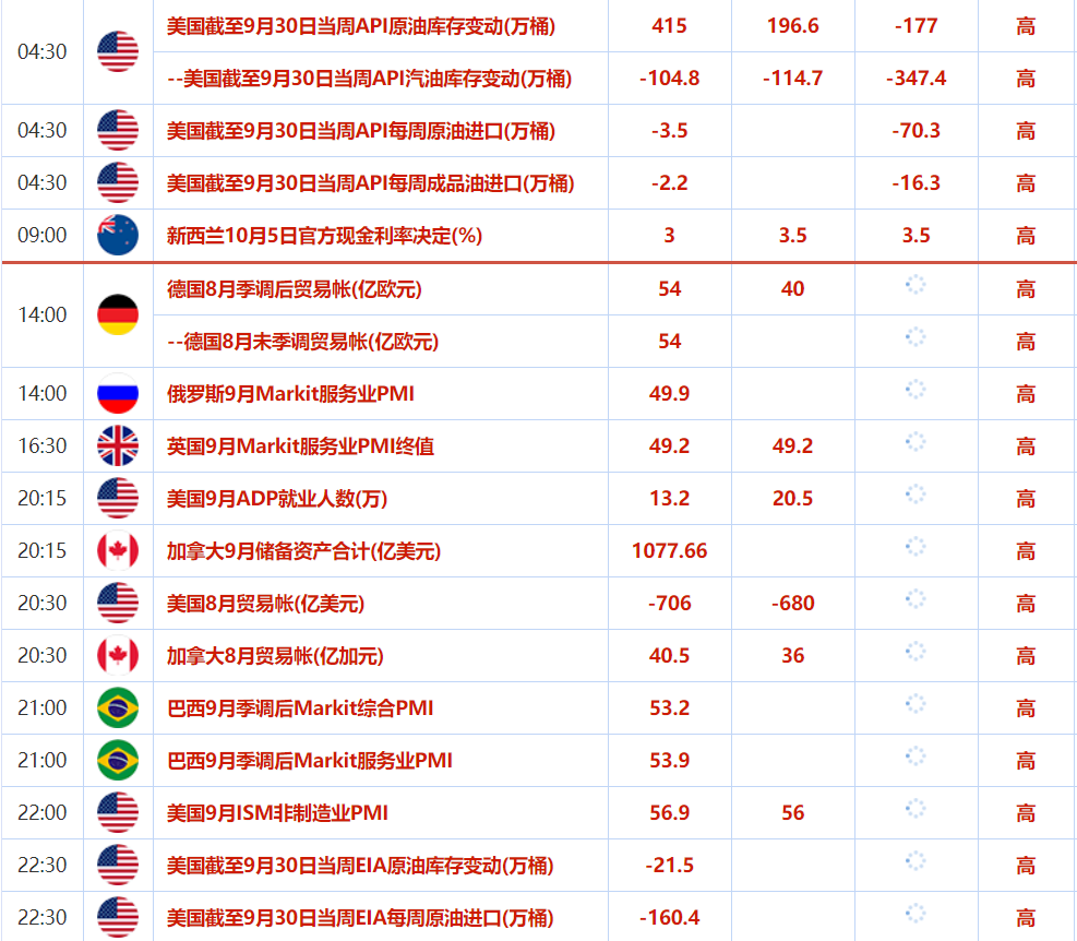 北京时间周三(10月5日)亚市早盘,