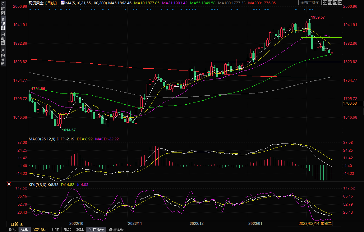 整体来看,晚间美国CPI数据的表现仍存在一定的变数,金价存在距离震荡的可能性,鉴于美元和美债收益率冲高回落,金价存在重拾涨势的机会;但美联储官员讲话可能偏向鹰派,技术面仍偏向黄金空头,市场对周三将出炉的美国零售销售的预期比较乐观,金价如果冲高受阻,则仍面临进一步下行风险。建议关注关注1840-1880区域突破情况,1840是布林线下轨支撑,1880是略高于10日均线的整数关口阻力。北京时间10:26,