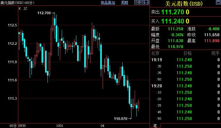 美元指数下跌0.35%至111.246。