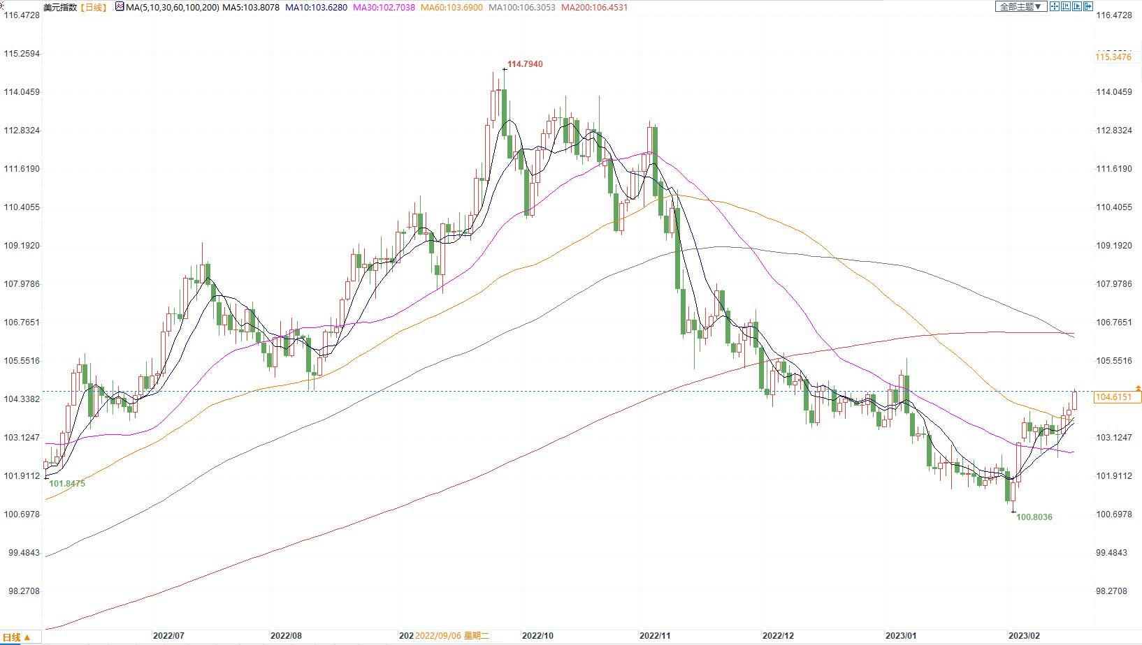 美元指数震荡攀升,势将连续三周上涨。高于预期的通胀数据和美联储官员的鹰派言论支持美元。与此同时,地缘政治风险,全球经济衰退的担忧情绪,这也激发了美元的避险需求。