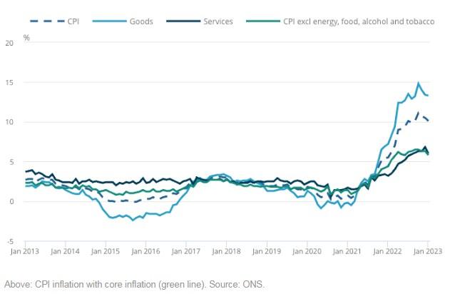 央行货币政策委员会(MPC)近期对1月份的通胀预测(两周前发布)再次击中了要害。”英国国家统计局(ONS)表示,英国1月份的整体CPI通胀同比下降至10.1%(市场预计10.3%),而12月份为10.5%。