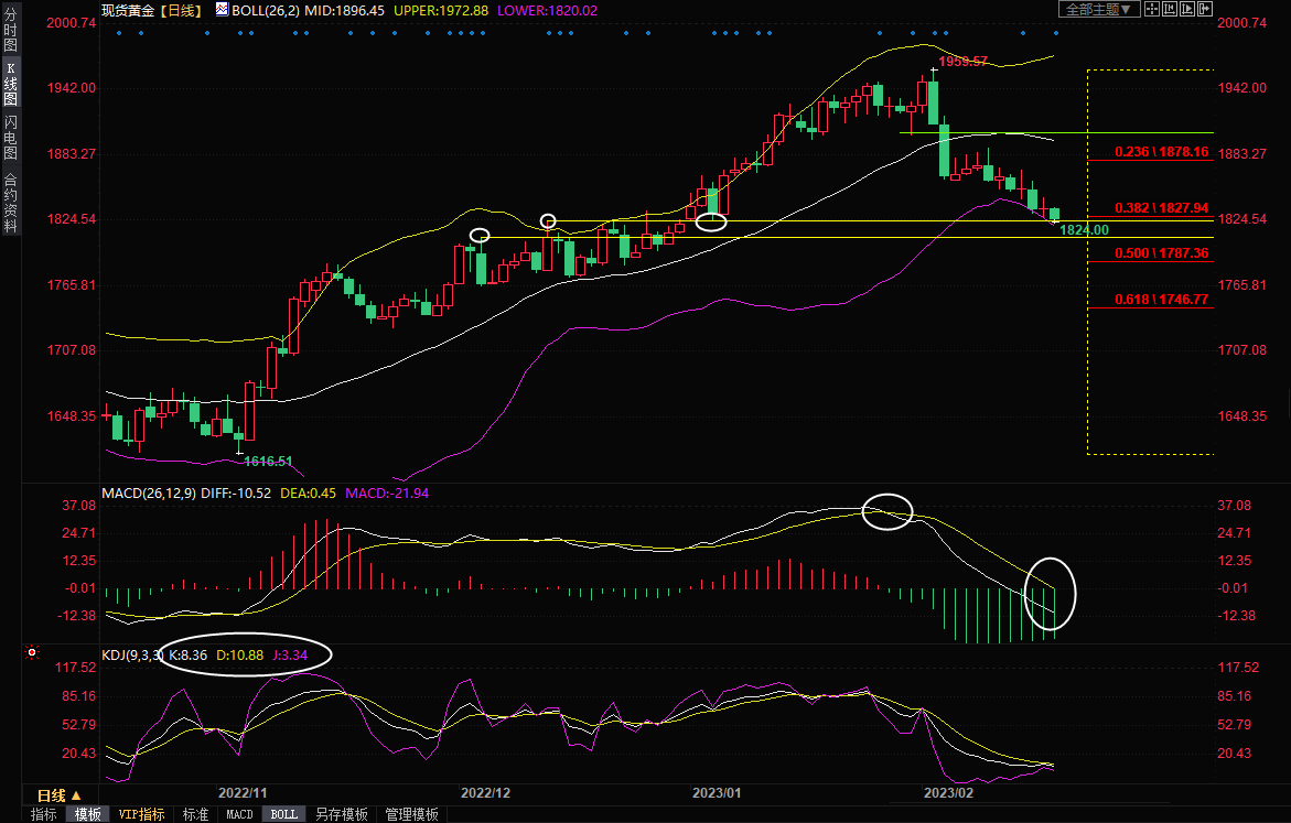 汇通财经APP讯——周五(2月17日)亚洲时段,现货黄金震荡走弱,一度刷新1月3日以来新低至1824美元/盎司,目前交投于1827.20附近,多个强劲的美国重磅经济数据后,对美联储更高的终端利率预期笼罩市场,美元和美债收益率持续攀高,对金价打压明显。技术面看空信号进一步增强,金价短线面临进一步下行风险。