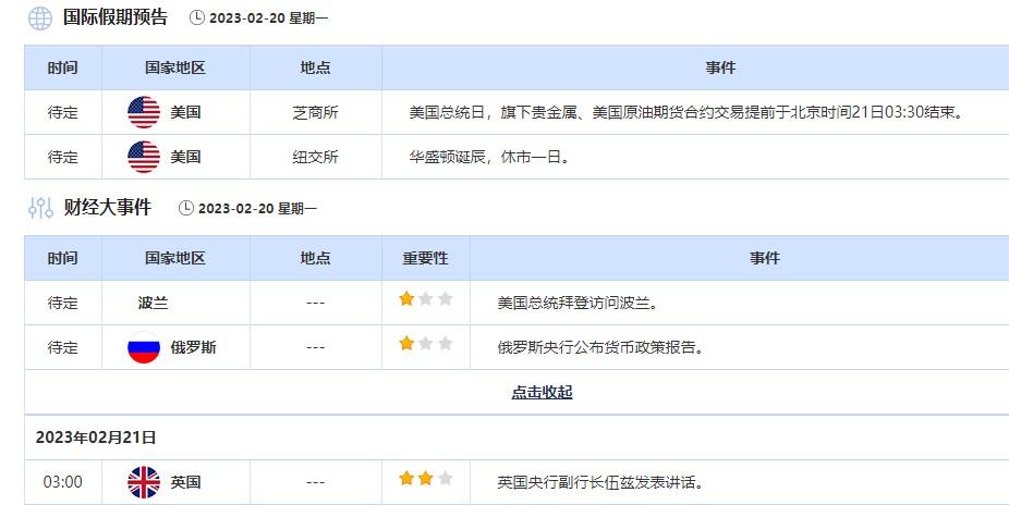 本交易日经济数据较少,恰逢华盛顿诞辰,美国股市休市一日,外汇市场交投可能受到限制。本周重点关注欧美国家2月PMI数据、美联储会议纪要和美国1月份PCE数据。