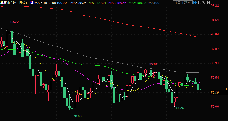 美原油现报76.39美元/桶。