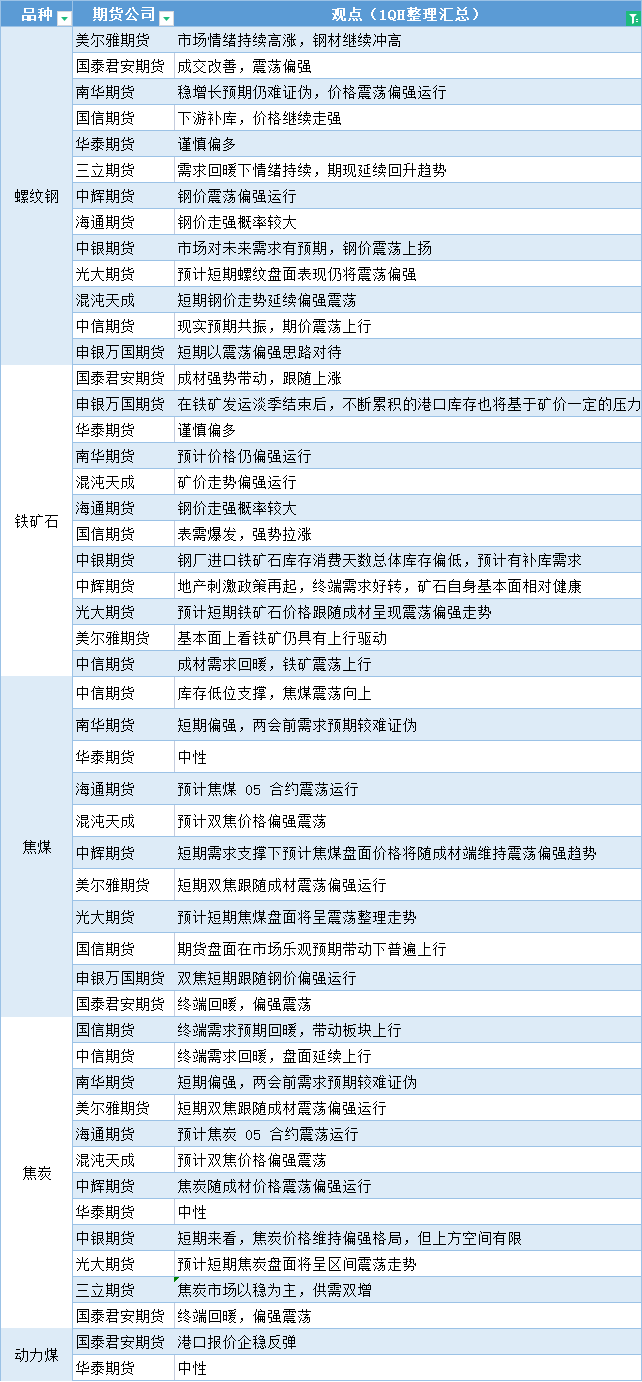 期货公司观点汇总一张图:2月21日黑色系(螺纹钢、焦煤、焦炭、铁矿石、动力煤等)