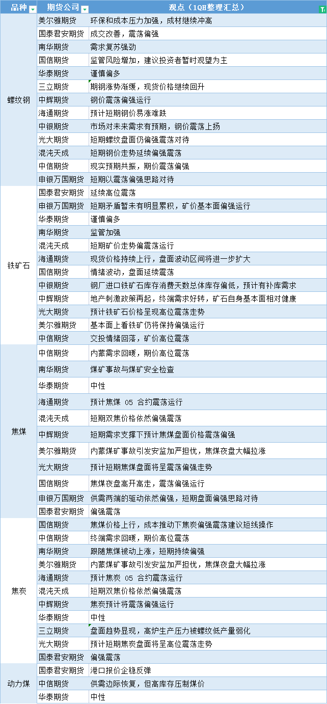 标题:期货公司观点汇总一张图:2月23日黑色系(螺纹钢、焦煤、焦炭、铁矿石、动力煤等)