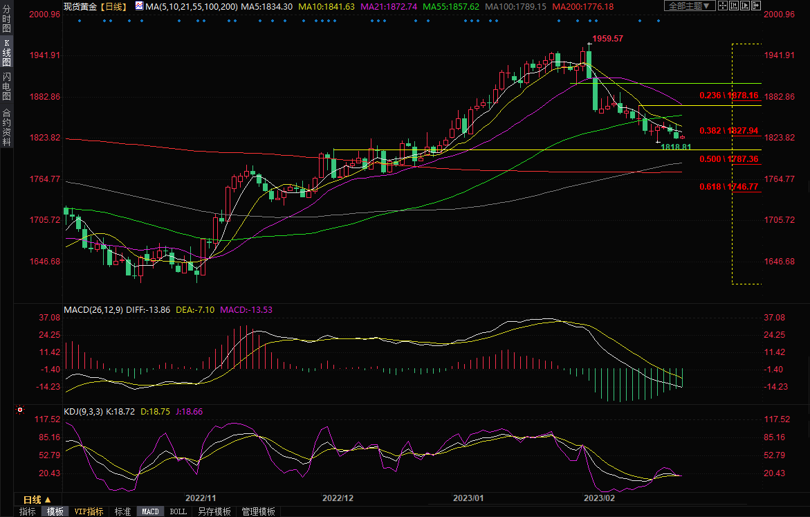 现货黄金现报1827.70美元/盎司。
